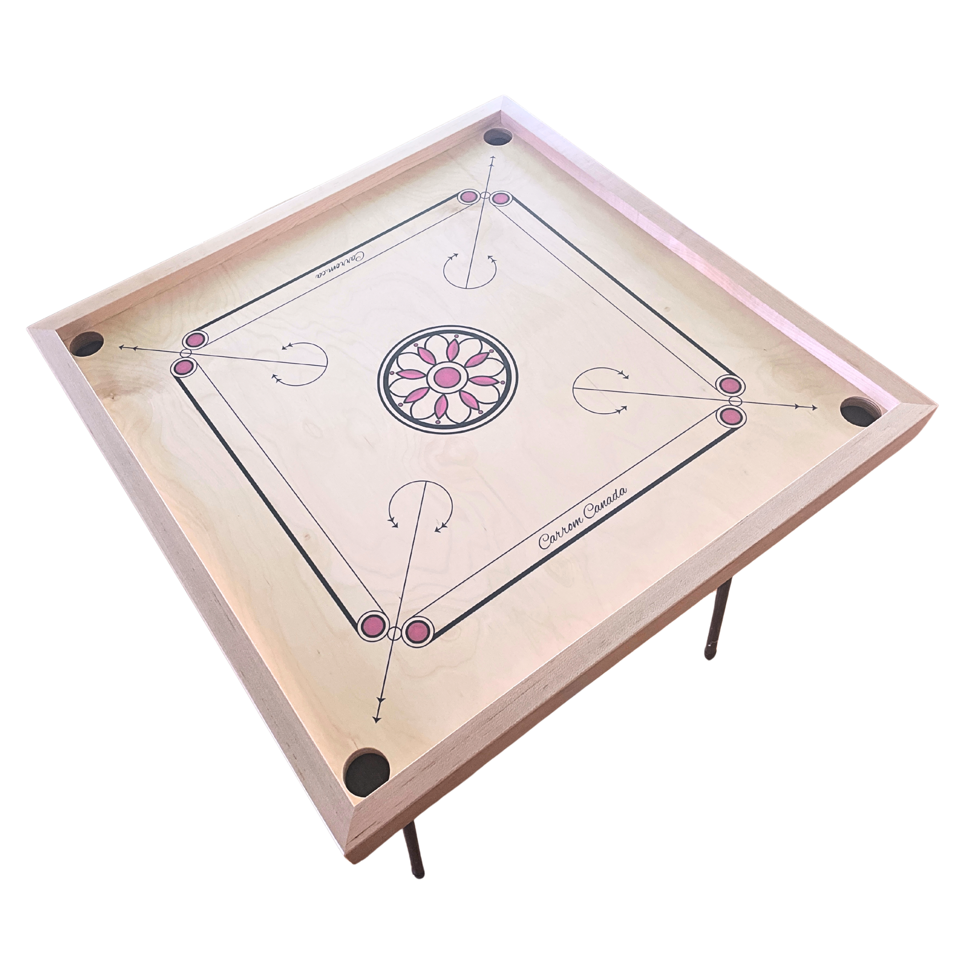 Le plateau est fabriqué en bois dur canadien et russe. Son cadre est en noyer noir massif et ses bords sont arrondis pour plus de confort et de sécurité. Le plateau King Carrom est également doté de pieds hauts, ce qui évite d'avoir à le poser sur un support. Vous pouvez jouer directement sur votre table. Aucun support n'est requis.